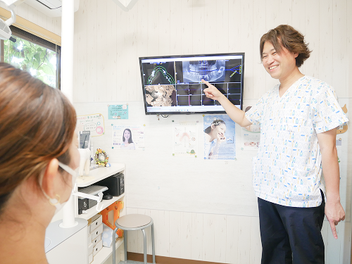 症状や治療方法について十分な説明を行い、ご理解・ご納得いただいた上で治療を進める「インフォームド・コンセント」を徹底。メリットやデメリット、治療期間、費用などもできる限りわかりやすくお伝えし、不安を解消できるよう心がけています。